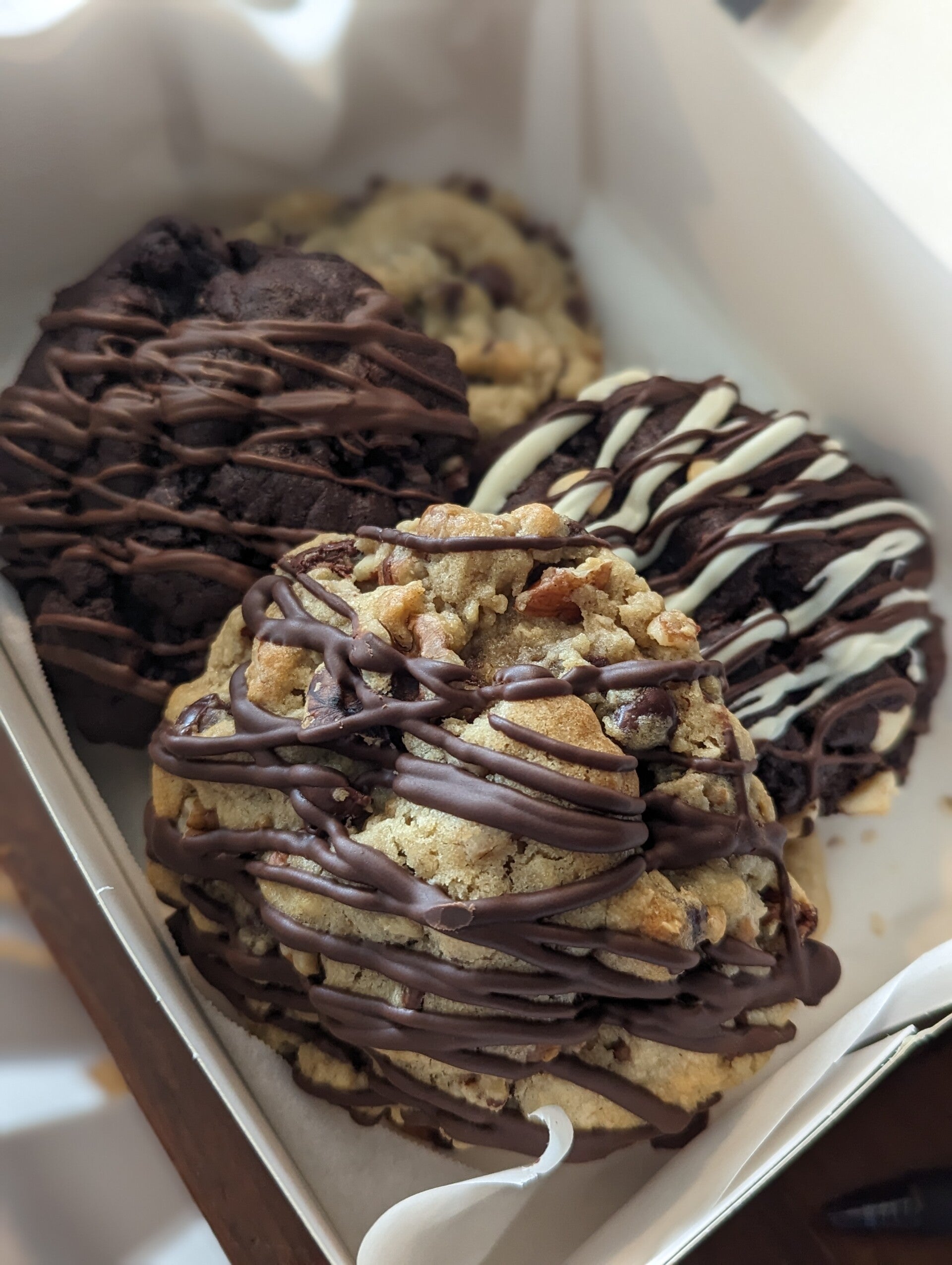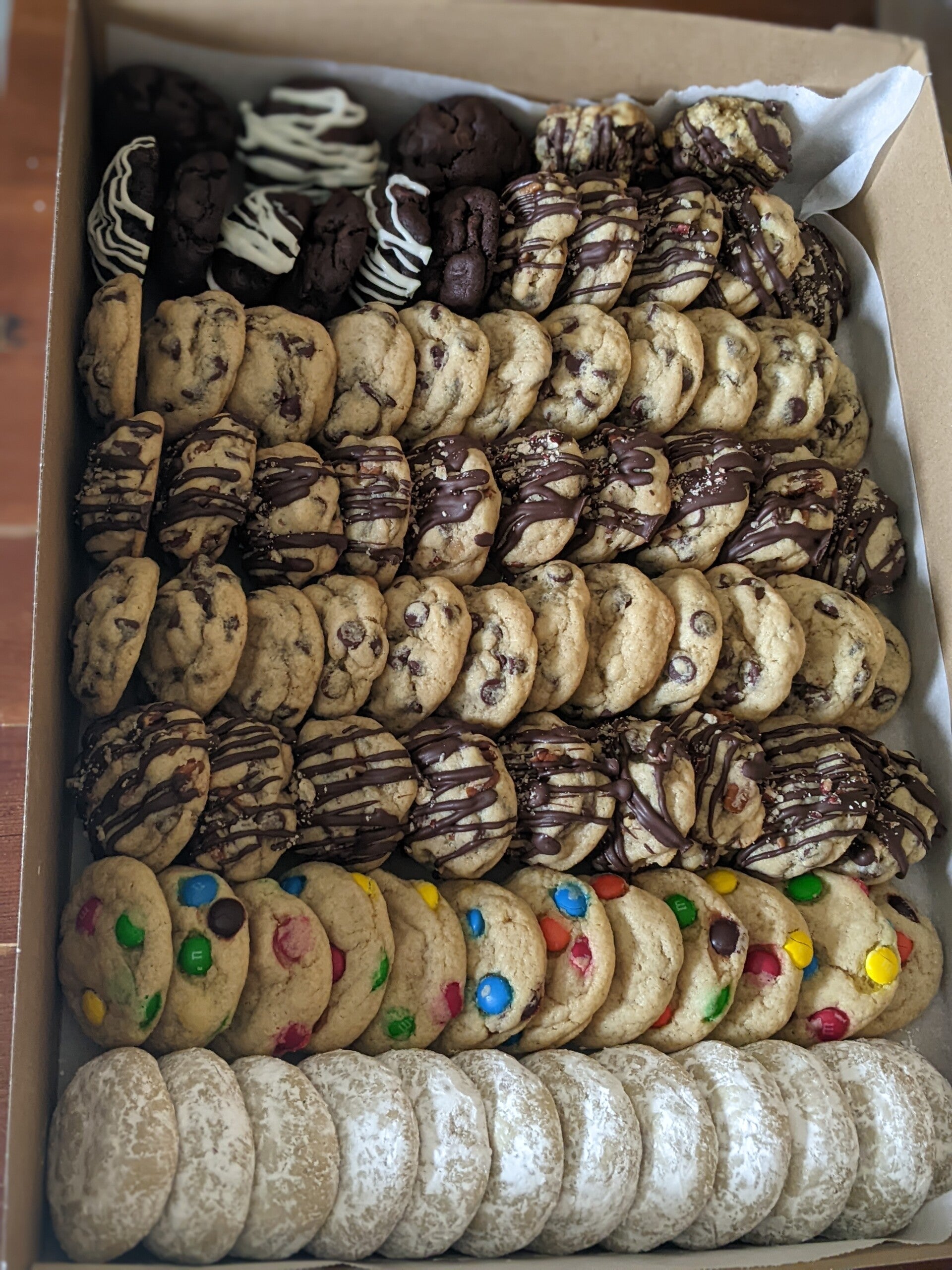 Large cookies are prices individually with discounts given for the more you buy. Mini cookies are only sold in boxes of 12 or more.